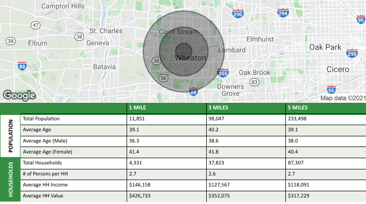 The Village boasts a vibrant downtown with two Metra Train stops and many restaurants, shops and retailers. Wheaton College is a liberal arts college and graduate school with approximately 3,000 students and 300 faculty members.